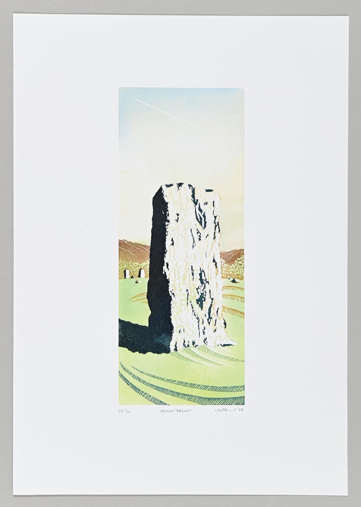 Reduction linocut and monoprint, printed on acid free smooth cartridge paper.